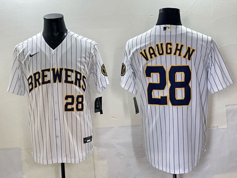 Milwaukee Brewers #28 Andrew Vaughn White Pinstripes Limited Jersey
