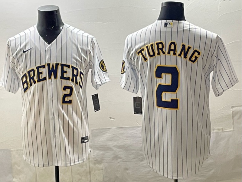 Milwaukee Brewers #2 Brice Turang White Pinstripes Limited Jersey