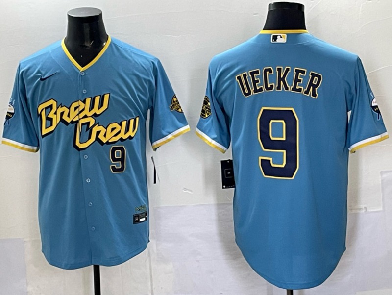 Milwaukee Brewers #9 Bob Uecker Baby Blue City Connect Jersey