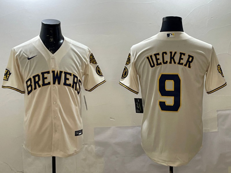 Milwaukee Brewers #9 Bob Uecker Cream with Patches Jersey
