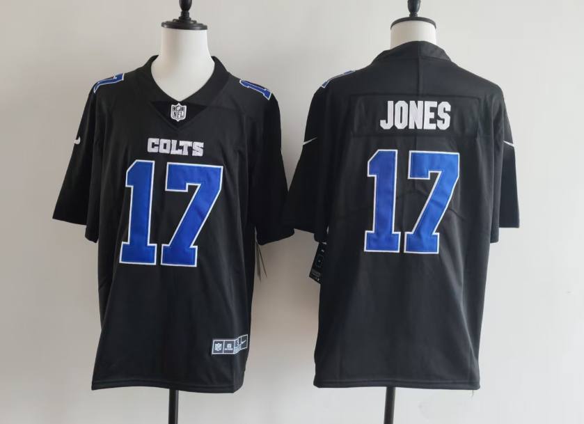 Indianapolis Colts #17 Daniel Jones Black with Blue Number Fashion Limited Jersey Inspired by what he's wearing on the field,