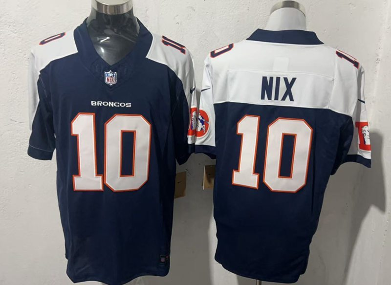 Denver Broncos #10 Bo Nix Navy with White Shoulders Vapor F.U.S.E. Limited Jersey