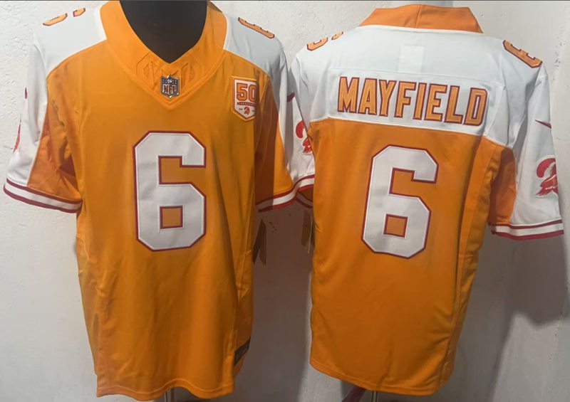 Tampa Bay Buccaneers #6 Baker Mayfield Orange with White Shoulders Vapor F.U.S.E. Limited Jersey