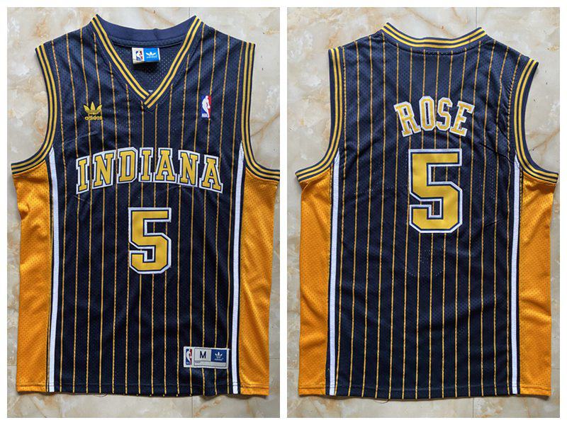 Indiana Pacers #5 Jalen Rose Navy Pinstripes Throwback Jersey5