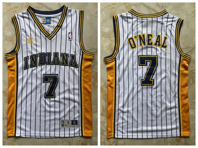 Indiana Pacers #7 Jermaine O'Neal White Pinstripes Throwback Jersey
