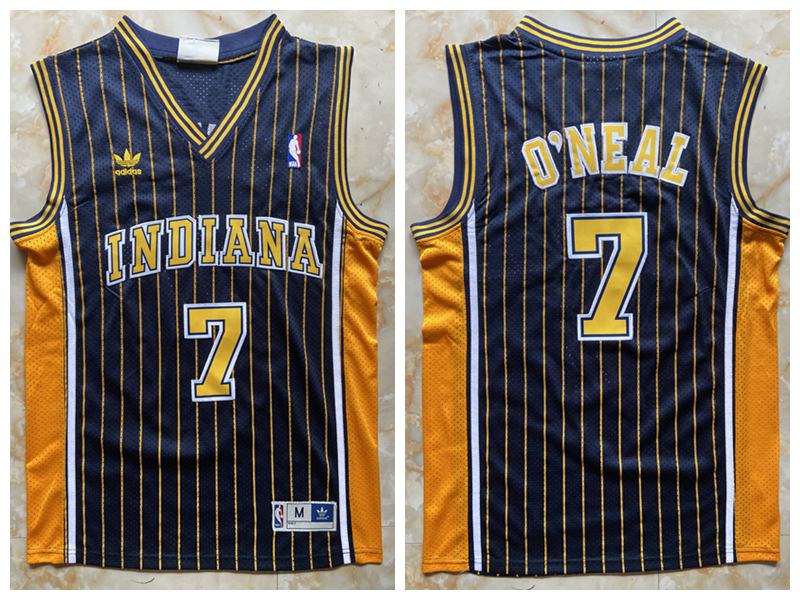 Indiana Pacers #7 Jermaine O'Neal Navy Pinstripes Throwback Jersey