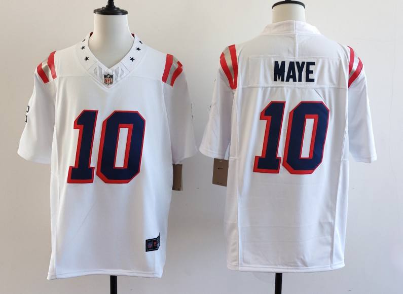 New England Patriots #10 Drake Maye White Throwback Limited Jersey Inspired by what he's wearing on the field,
