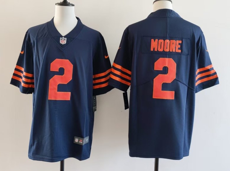 Chicago Bears #2 DJ Moore Navy with Orange Number Vapor Limited Jersey