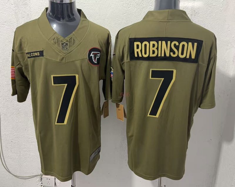 > NFL Nike Limited Jerseys > Atlanta Falcons > Atlanta Falcons #7 Bijan Robinson Green 2025 Salute to Service Limited Jersey