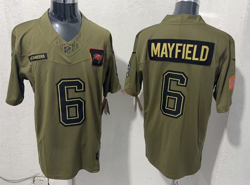 Tampa Bay Buccaneers #6 Baker Mayfield Green 2025 Salute to Service Limited Jersey Inspired by what he's wearing on the field
