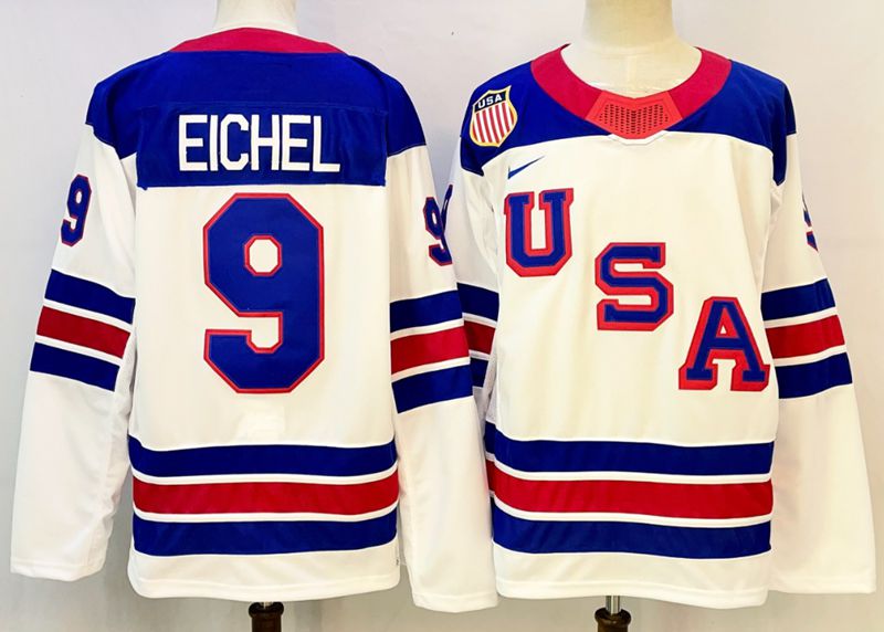 Team USA #9 Jack Eichel White 2026 Winter Olympics Jersey