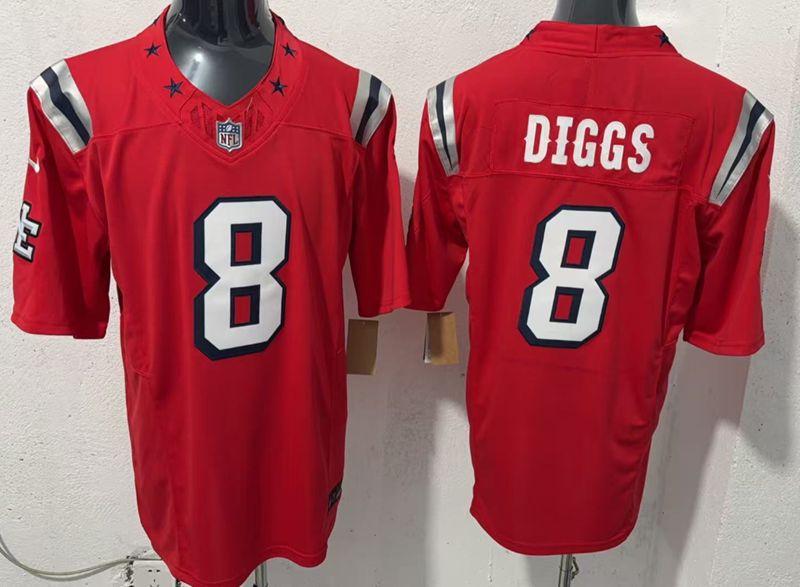 New England Patriots #8 Stefon Diggs Red Throwback Limited Jersey