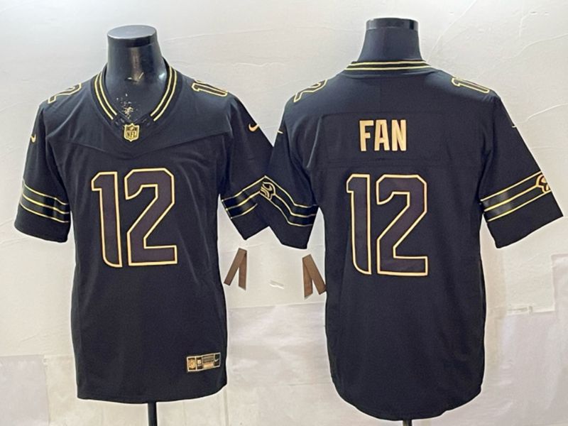 Seattle Seahawks #12 Fan Black Golden Limited Jersey