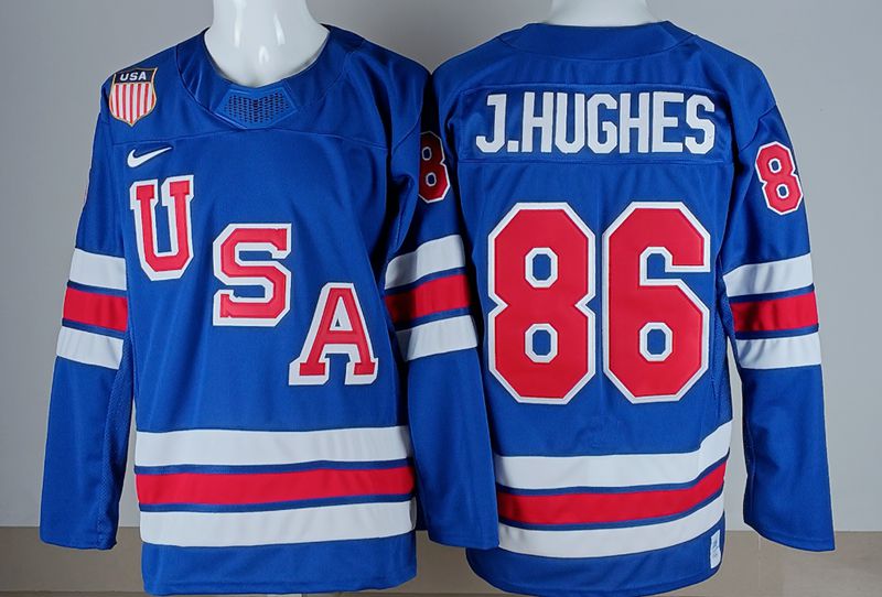 Team USA #86 J.Hughes Blue 2026 Winter Olympics Jersey
