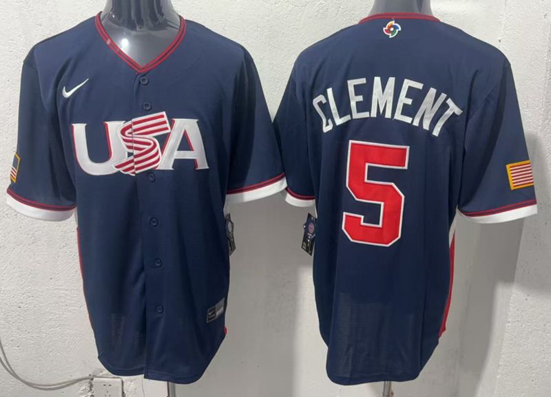 > MLB Jerseys > MLB 2026 WBC > Team USA #5 Ernie Clement Navy 2026 World Baseball Classic Jersey