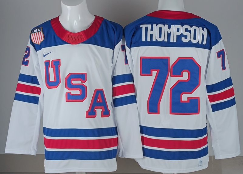 Team USA #72 Tage Thompson White 2026 Winter Olympic Jersey